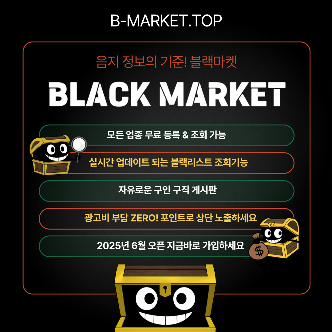 블랙마켓(BLACKMARKET)은 음지에서 활동하는 다양한 업자들을 위한 전문 커뮤니티 플랫폼입니다.